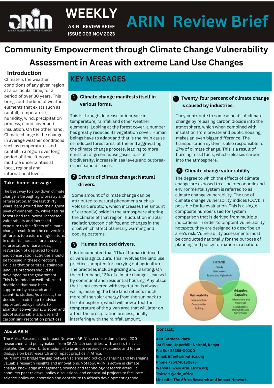 Climate change vulnerability. The degree to which the effects of climate change are exposed to a socio-economic and environmental system is referred to as climate change vulnerability. The use of climate change vulnerability indices (CCVI) is possible for its evaluation. This is a single composite number used for system comparison that is derived from multiple indications. In order to pinpoint vulnerability hotspots, they are designed to describe an area’s risk. Vulnerability assessments must be conducted nationally for the purpose of planning and policy formation in a nation.