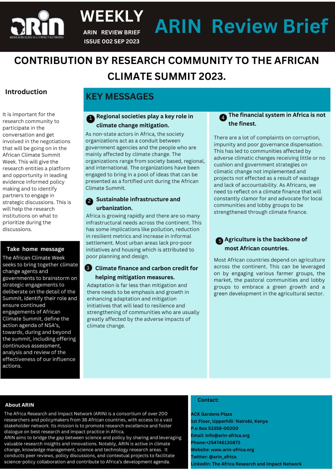 It is important for the research community to participate in the conversation and get involved in the negotiations that will be going on in the African Climate Summit Week. This will give the research entities a platform and opportunity in leading evidence informed policy making and to identify partners to engage in strategic discussions. This is will help the research institutions on what to prioritize during the discussions.