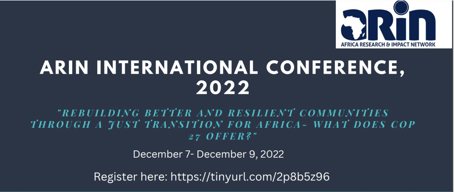 The World is on the verge of and amid several transitions structured by major social, economic, and environmental disruptions including climate change, COVID-19, and knowledge shifts. These disruptions are redefining new institutional cultures, governance, and decision-making processes, with implications on the people and particularly the poor and marginalized groups, including women, children, indigenous people, and ethnic minorities among others. In the recent international debates, attention has been given to the concept of just transition – aimed at safeguarding the socio-economic rights and resilience of these vulnerable groups. However, it is possible that some of the processes and interventions underpinning the just transition agenda, if not well understood, might reinforce vulnerabilities or even create new ones, especially for African communities. The ARIN International Conference 2022 seeks to interrogate pathways through which just transition processes in Africa could rebuild better and more resilient local communities