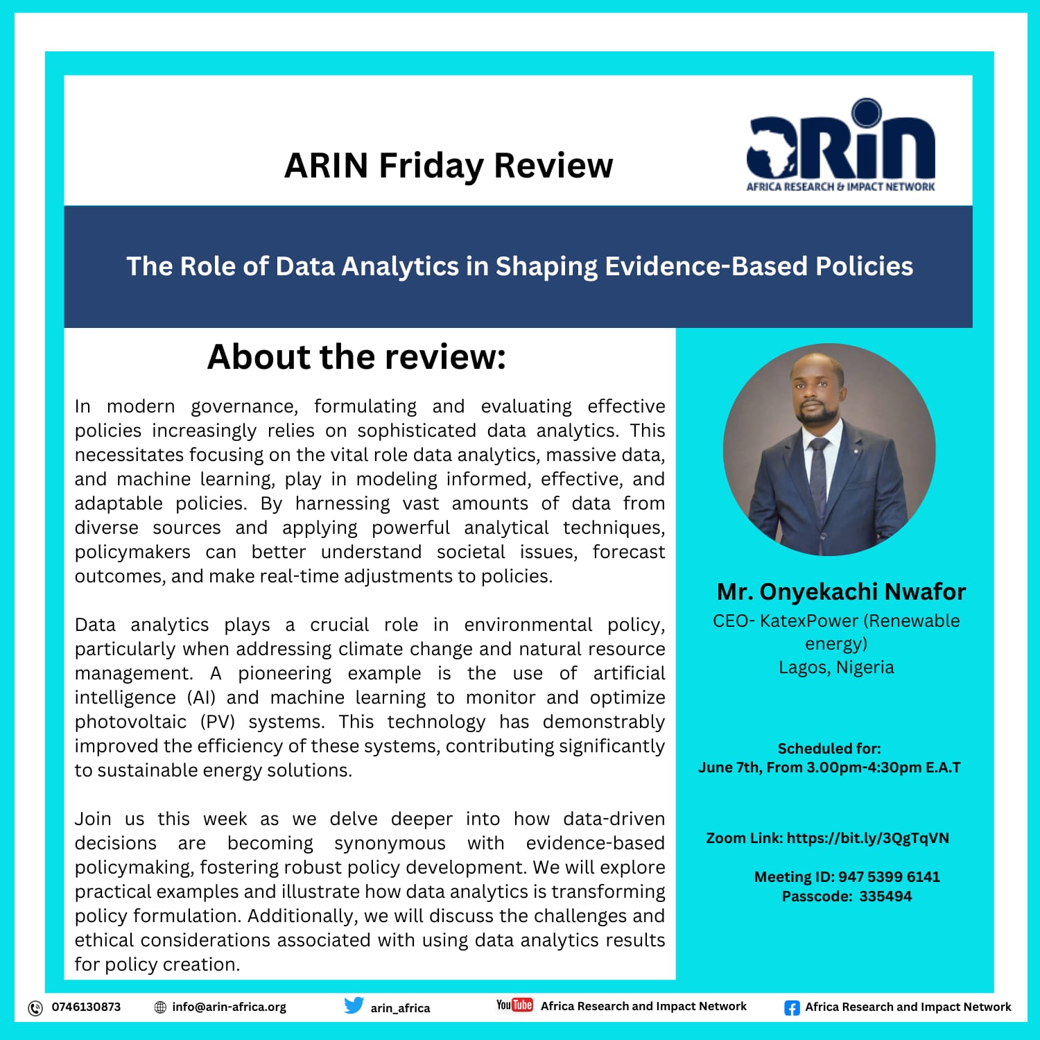 On behalf of the Africa Research and Impact Network Fellowship Team, I invite you to our upcoming ARIN Friday Review Session Scheduled for Friday, 7th June 2024 from 3.00PM E.A.T.