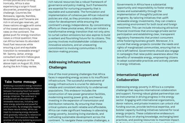 • BALANCING FOSSIL FUEL WEALTH AND RENEWABLE AMBITIONS; AFRICA’S PATH TO A JUST ENERGY TRANSITION